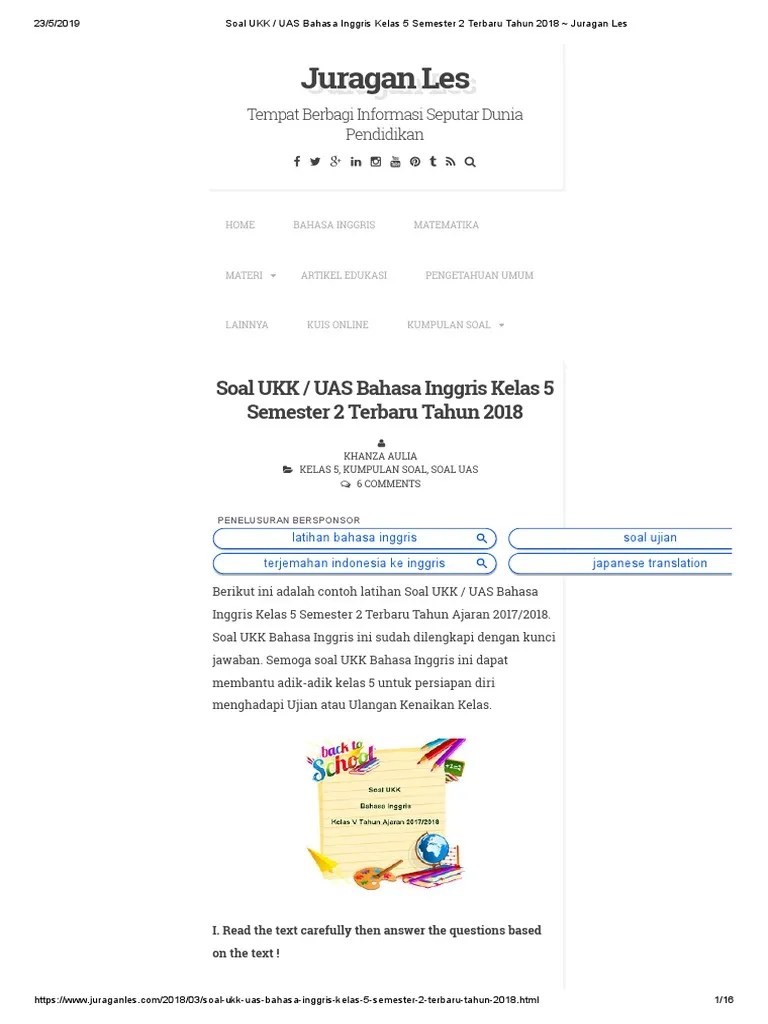 Berikut ini kumpulan soal online uas / ukk kelas 5 ( lima ) sd semester 2 genap yang bisa anda jadikan sebagai bahan latihan dan belajar . Berikut ini kumpulan contoh soal ukk/pat/uas tema 9 untuk kelas 5 sd/mi semester genap. Berikut ini adalah kumpulan soal ukk / uas kelas 5 semester 2 dan file download soal ukk pkn, bahasa indonesia, ips, ipa, matematika, dan bahasa inggris. Kumpulan soal ukk/pas kelas bahasa indonesia kelas 5 sd semester genap atau semester 2. Contoh soal ukk / penilaian akhir tahun tema 8 kelas 5 terbaru tahun ajaran 2018/2019 dengan.